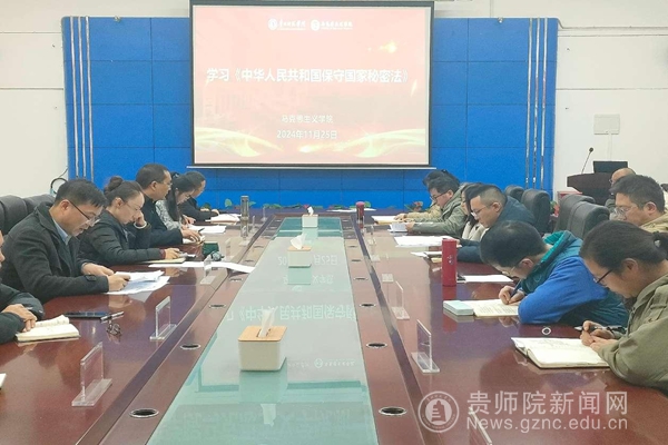 本网讯 为增强教师保守国家秘密意识和防范能力,马克思主义学院强化保密教育,开保密教育工作会议,深入学习《中华人民共和国保守国家秘密法》,更好地维护国家发展利益,2024年11月25日,马克思主义学院全体教师集中学习《中华人民共和国保守国家秘密法》。本次学习由万象城网页版党委委员、副校长、马克思主义学院党委书记任洁主持,全体教师参加。