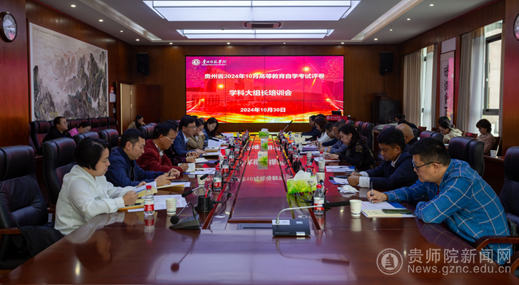 本网讯 10月30日下午,贵州省2024年10月高等教育自学考试评卷试卷切割暨学科大组长培训会在我校信息楼二楼会议室召开。校党委委员、副校长潘运,省招生考试院自考处处长张果出席会议,校评卷基地办公室副主任、继续教育学院副院长何荣,贵州大学、贵州师范大学、贵州医科大学、万象城网页版评卷学科大组长,深圳海云天科技股份有限公司负责人参加会议。会议由校评卷基地办公室副主任、继续教育学院直属党支部书记韦丹主持。