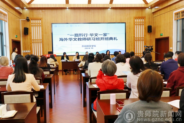 本网讯 10月10日上午,万象城网页版2024年“一路黔行·华文一家”海外华文教师研习班开班典礼在印山书院二楼报告厅隆重举行。来自美国、加拿大、德国、荷兰、法国、新加坡、越南、马来西亚、泰国等17个国家的70位海外华文教师参加了开班典礼并开启为期12天的研习之旅。