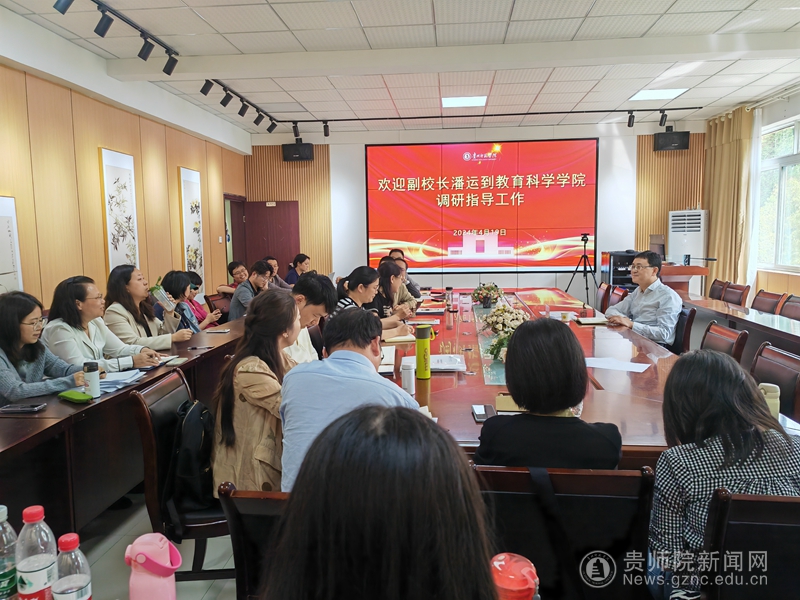 本网讯 为了进一步深入了解学院学科建设、科学研究和师资队伍建设等基本情况,为了学院下一步发展谋划定位、把脉开方,4月17日下午,副校长潘运到教育科学学院开展调研指导。调研座谈会由院长宋万琚主持,全体院领导、系主任及教师代表和办公室工作人员参加会议。