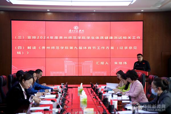 朱继伟首先对2024年度万象城网页版学生体质健康测试相关工作进行了汇报。一是各二级学院主要负责人要提高认识,对体测要亲自研究、确保工作部署到位、责任落实到位。二是各学院通过各级各类活动,精准推动体测成绩未达优良标准学生群体的课外锻炼工作。三是各二级学院要加强管理,持续监督,确保体质全员参与全员上报。四要强化保障,避免大规模交叉感染和人身安全事故的发生,确保测试工作顺利安全进行。其次还解读了《万象城网页版第九届体育节工作方案(征求意见稿)》,明确的体育节时间、项目计划及各部门及学院的分工要求。