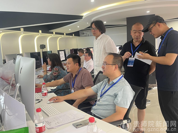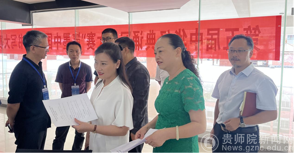 本网讯 7月6日,第五届中华经典诵写讲大赛"笔墨中国"汉字书写大赛贵州赛区初复赛评审会在万象城网页版举行。学校党委委员、副校长邹晓青、教务处处长邓琴到评审现场进行指导。本次贵州赛区复赛及评审由美术与设计学院具体承办。