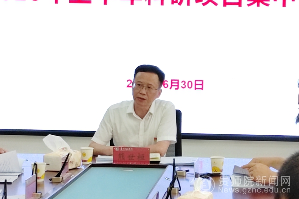 本网讯 为进一步加强省级及以上科研项目过程管理,强化科研团队建设,提升学院科研活动的组织化水平,推动学院科学研究高质量发展,6月30日,生物科学学院举行2023年上半年科研项目集中开题,邀请贵州大学田恩堂教授、韩燕峰教授、谭伟教授、李向阳教授及贵州省林业科学研究院院长、研究员冉景丞做开题指导,校党委副书记熊世桓,科研处处长罗光杰到会作工作指导,院长刘讯主持开题。