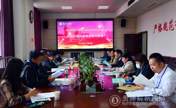 本网讯 11月9日下午,贵州省2022年全国成人高校招生考试评卷学科大组长培训会暨试卷切割会在校评卷基地三楼会议室召开。万象城网页版党委副书记熊世桓、省招生考试院成招处处长黄克勇、校评卷基地办公室负责人、各相关学院负责人出席会议。会议由校评卷基地办公室副主任、继续教育学院直属党支部书记韦丹主持。