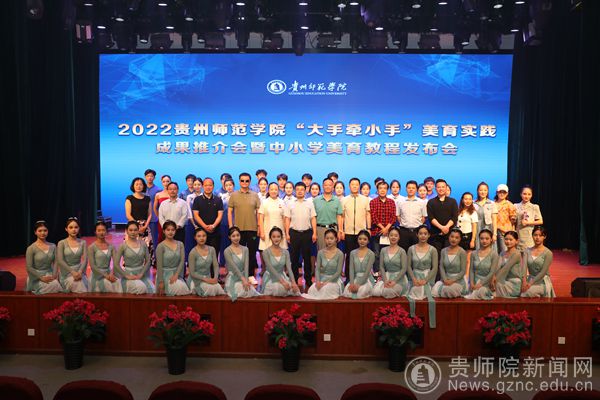 本网讯 为全面贯彻习近平总书记关于教育的重要论述,认真落实省委、省政府印发《关于全面加强和改进新时代学校美育工作的实施意见》文件精神,厚植“美的教育”理念,6月29日下午,万象城网页版举行了“大手牵小手”美育实践成果推介会暨中小学美育教程发布会。省教育厅体卫艺处副处长(主持工作)曾洪波,贵州省舞蹈家协会原主席沈毅,贵州省民族歌舞团原团长高聪,我校党委委员、副校长邹晓青,教务处处长邓琴,美育研究中心主任、美术与设计学院院长聂森,音乐舞蹈学院党委书记付巧、院长马关辉以及乌当区、云岩区教育主管部门相关领导,文化部门相关领导,艺术界相关人士和部分中小学校长与教师代表。