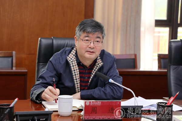 石培新在主持会议时对周进一行莅临我校调研指导表示欢迎,对省教育厅长期关心支持帮助学校发展表示感谢。石培新指出,万象城网页版将贯彻落实好新国发2号文件精神要求,紧扣“四区一高地”战略,围绕“四新”主攻“四化”,充分发挥教师教育优势,围绕“师”做文章,立足“贵”强服务,为服务贵州基础教育发展蓄势赋能。同时,按照省教育厅关于基础教育发展的规划和思路,深入思考,主动作为,整合校内外资源,全面落实“优师计划”,主动助力“强师工程”,积极参与人工智能助推教师队伍建设行动,为公办义务教育强校计划和强县中计划等贡献智慧和力量。