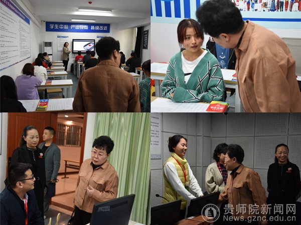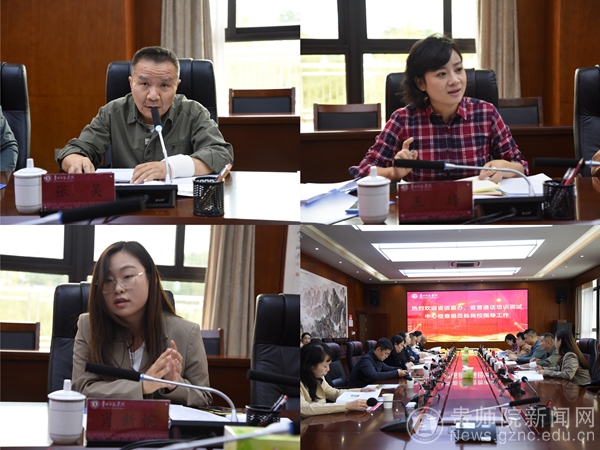 会上,贵州省普通话培训测试中心负责人、检查组副组长杨震介绍了专家组成员以及本次检查的主要目的。邓琴从基本保障、测试规范、宣传普及等三个方面就我校普通话水平测试站的工作情况进行汇报,并提出了我校在语言文字达标创建、普通话教学实训软硬件建设方面的规划,表达了我校力争申报国家语言文字推广基地的期待和决心。专家组认真查看了我校机测工作相关资料,邓琴、陈欣、郑颖以及教务处综合科科长吴娇对专家组提出的问题进行了一一解答。