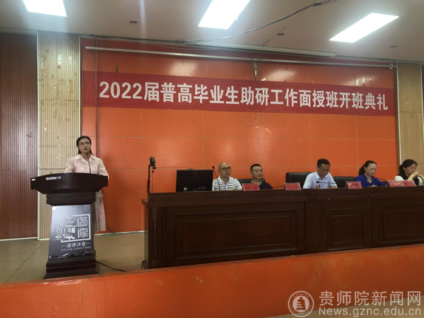 本网讯 7月9日下午,2022届普高毕业生助研工作面授班开班典礼在我校文韬苑三楼学术报告厅举行。2022届普高毕业生助研面授班全体学员、教务处全体领导班子参加开班典礼,校党委委员、副校长熊世桓出席会议并讲话,会议由教务处处长邓琴主持,会议特邀辅导员代表物理与电子科学学院楚亚萍老师作交流发言。