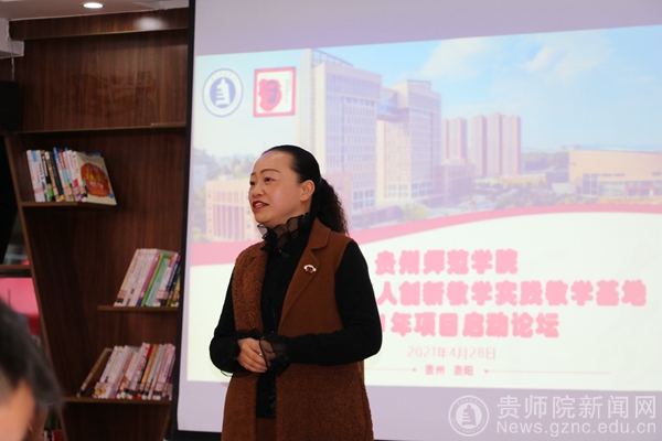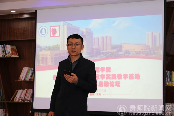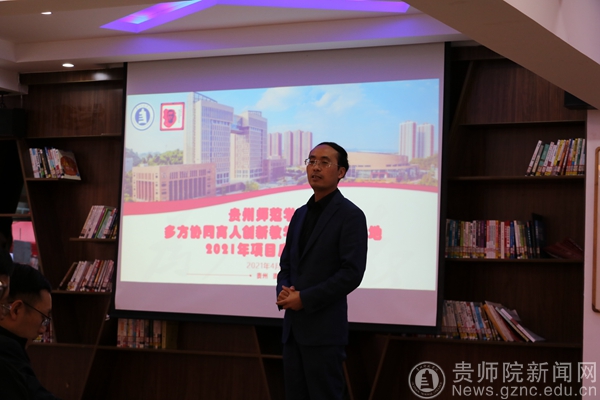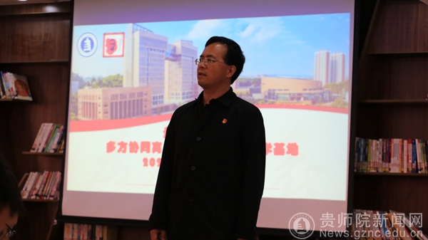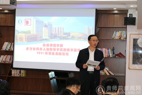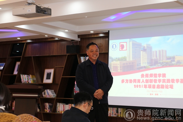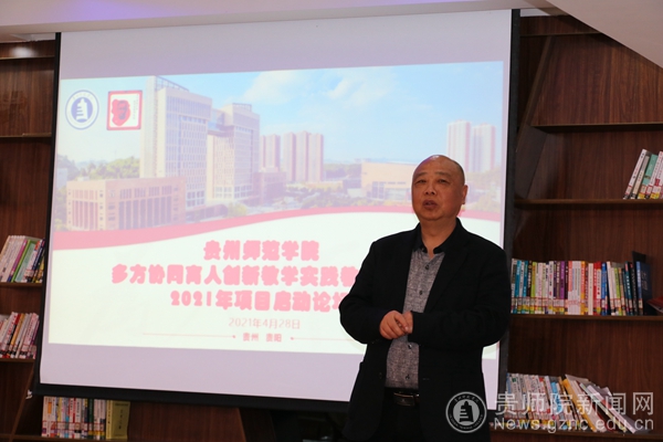 贵州省陶行知教育思想研究会秘书长、教务处多方协同育人项目负责人全奕主持会议