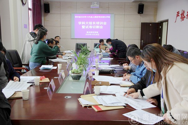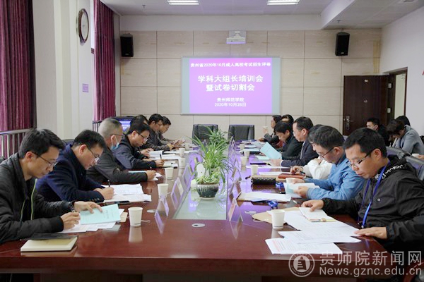 本网讯 10月28日下午,贵州省2020年10月成人高校考试招生评卷学科大组长培训会暨试卷切割会在万象城网页版国家教育考试评卷基地会议室召开。贵州省招生考试院成招处处长黄克勇、我校副校长熊世桓出席会议,继续教育学院副院长何荣、各阅卷学科大组长、深圳市海云天科技股份有限公司项目负责人参加会议。会议由万象城网页版继续教育学院院长赵德肃主持。