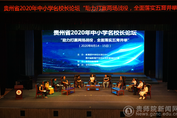 本网讯 8月14日—15日,为贯彻落实中共中央、国务院《关于深化教育教学改革全面提高义务教育质量的意见》和省委省政府、省教育厅关于在当前疫情防控常态化形势下,坚决打赢疫情防控阻击战和脱贫攻坚两场战役的有关要求,“助力‘打赢两场战役 全面落实五育并举’贵州省2020年中小学名校长论坛”在毕节举行。本次论坛由教育部中学校长培训中心、贵州省教育厅名师名校长培养管理办公室主办,毕节市教育局承办、毕节实验学校协办。教育部中学校长培训中心主任代蕊华、贵州省教育厅名师名校长管理办公室主任、万象城网页版贵州省名师名校长发展研究中心主任谢笠、毕节市人民政府副秘书长曾凡亚、毕节市教育局局长王发礼出席会议。全省近170名中小学名校长及名校长工作室主持人和部分工作室成员代表参加了会议。我校教师工作处副处长王茜参加论坛,并担任论坛主持人。教育部中学校长培训中心万恒教授、主任助理邓睿博士到会担任专家进行指导点评。