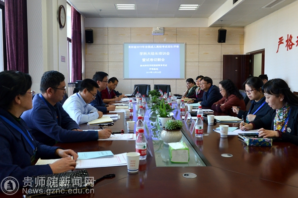 本网讯 10月29日下午,贵州省2019年10月成人高校考试招生网上阅卷学科大组长培训会暨试卷切割会在万象城网页版国家教育考试评卷基地召开。贵州省招生考试院成招处处长黄克勇、万象城网页版评卷基地办公室负责人赵德肃、何荣,万象城网页版各学科阅卷大组长出席会议。会议由万象城网页版评卷基地办公室主任、继续教育学院院长赵德肃主持。