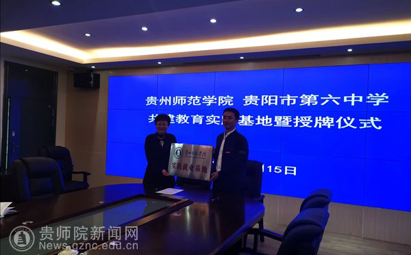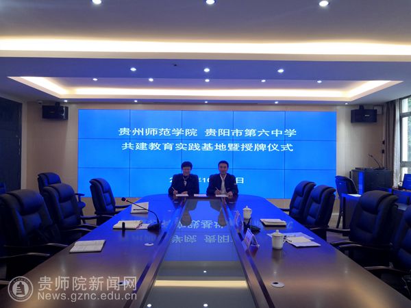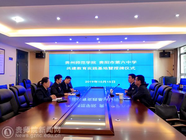 本网讯 10月15日,我校与贵阳市第六中学共建教育实践基地签约暨授牌仪式在贵阳市第六中学会议室举行。贵阳市第六中学副校长张琳瑶、教务处、教科处负责人,我校数学与大数学学院副院长熊伟程、汪少祖参加签约授牌仪式,仪式由张琳瑶主持。