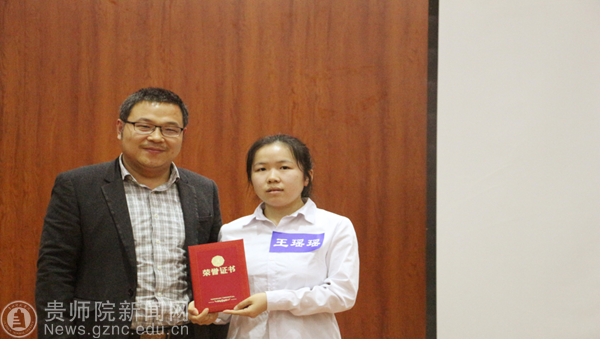 薛璞为获奖选手颁奖并合影