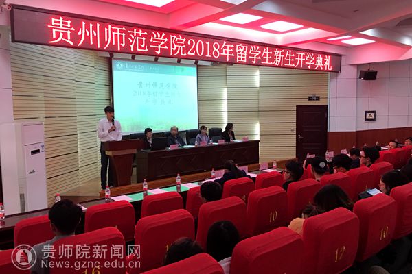 本网讯11月9日下午,外国语学院在宁静楼150多功能厅举办了万象城网页版2018年留学生新生开学典礼。万象城网页版校长郁钟铭、副校长郭文、对外交流与合作处处长张瑶、副处长陶秀筑、教务处处长熊世桓、文学与传媒学院党委书记韦丹、继续教育学院院长赵德肃、校团委书记张婷出席了开学典礼。开学典礼由外国语学院院长兼国际教育学院(筹)办公室主任余学军主持。外国语学院相关教师、全体国际留学生、留学生语言伙伴(志愿者)以及学生代表参加了开学典礼。