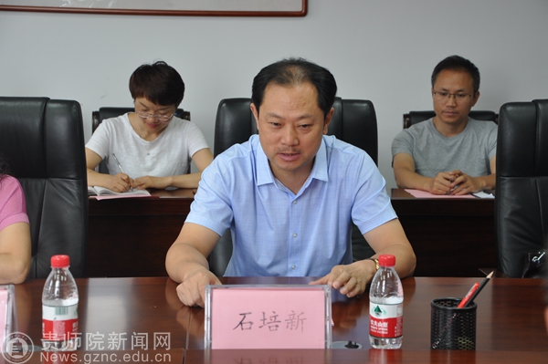 石培新书记对两位专家的到校指导工作以及之前给予的大力支持表示感谢。石培新书记指出,从之前高研院负责人到北京获得的相关信息,到今天两位专家对研究院为什么建、如何建以及建到什么程度等具体问题的深入指导,更加坚定了学校对贵州民族学与人类学高等研究院更名的信心,也坚定了办好“贵州民族教育研究院”的决心。石书记还从学校办学定位、办学基础与学科优势、民族地区教育政策及资源优势等三方面介绍了高研院更名的必要性与紧迫性,并认为“贵州民族教育研究院”的建立,既符合学校的办学定位,又是对学校几十年的办学基础和成果的进一步拓展与创新,同时高度契合国家对于民族地区脱贫攻坚的重大需求,对于学校发展来说,无疑是恰逢其时、机遇良好。石书记最后对“贵州民族教育研究院”的发展提出了几点要求:一是高起点建设,高标准要求。民族教育研究院的建设,要跳出师院,在内部发力的同时,学会借力,整合与借助贵州乃至全国的资源,在内力和外力的共同作用下,把“贵州民族教育研究院”建设成为全国民族地区民族教育研究的重要平台,甚至成为全国的范式。二是多单位共建,共享平台及资源。要积极争取我校与教育部民族教育发展中心、中国教育科学研究院等三家单位共建,共同推动该研究院的发展,实现资源与发展平台互利共赢。三是规划先行,未雨绸缪。要及时制定规划和具体发展方案,不能等,有计划、有步骤、分阶段的逐步实施,要聘请知名专家进行进一步的指导,充分发挥各方面资源与优势,为学校今后的发展提供新的平台机遇和更为广阔的发展空间。