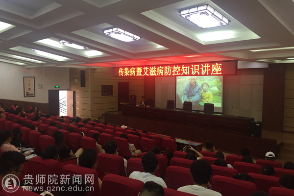 本网讯 6月7日下午,为保障校园公共卫生安全,进一步做好传染病预防教育工作,提高学生的自我保护意识和能力,后勤处和学工部联合邀请乌当区疾病预防控制中心杨亚玲医师,在道德讲堂举办了以“校园传染病暨艾滋病防控”为主题的知识讲座。各学院专职辅导员、医保专管员以及学生代表共计240余人参加。后勤处副处长舒红琴主持了讲座。
