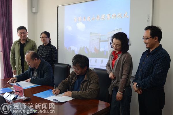 本网讯 4月12日下午,在信息楼1011会议室举行特聘教授签约仪式,聘请中国美协版画艺术委员会委员、著名版画家、二级教授王建山担任万象城网页版特聘教授。出席本次签约仪式的有学校校长郁钟铭,科研处处长金凤,人事处处长刘俊玲,副处长王军,设计学院副院长(主持工作)聂森以及设计学科、美术学科部分老师。本次签约仪式由聂森主持。