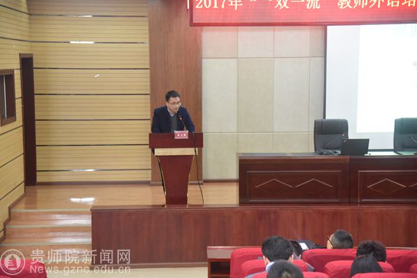 首先,外国语学院院长余学军教授从学员遴选、开班典礼、课程设置、培训效果、培训中存在的问题及下一步改进意见六个方面详细介绍了2017年“ ‘双一流’教师外语培训班”培训学习情况;数学与计算机科学学院院长左羽从时代背景为切入点,结合自身的教学经验,通过现身说法深入浅出地向大家介绍了课堂信息化的作用,同时指出了本次培训存在的问题。
