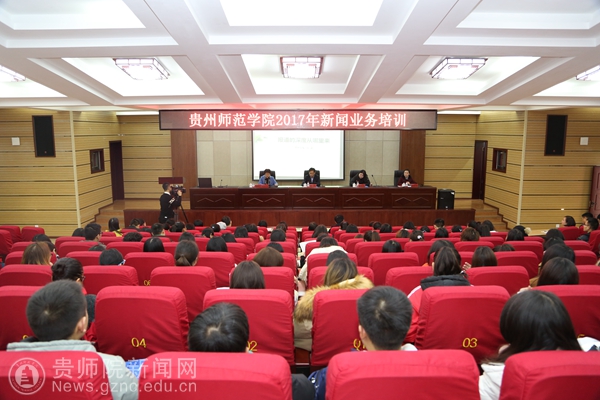 本网讯 为进一步加强我校的宣传工作,提高学校宣传队伍的新闻报道能力,营造良好的舆论宣传氛围,12月15日下午,我校在道德讲堂举行2017年新闻业务培训。特邀请贵州日报党委委员副总编辑、贵州日报评论员文章主要撰稿人冉斌和贵州日报新媒体中心副主任,“今贵州”客户端、“政前方”官方微信号内容总监邹晨莹到校现场讲座。校党委副书记令狐彩桃出席讲座并讲话,校党委宣传部部长邹晓青主持讲座。