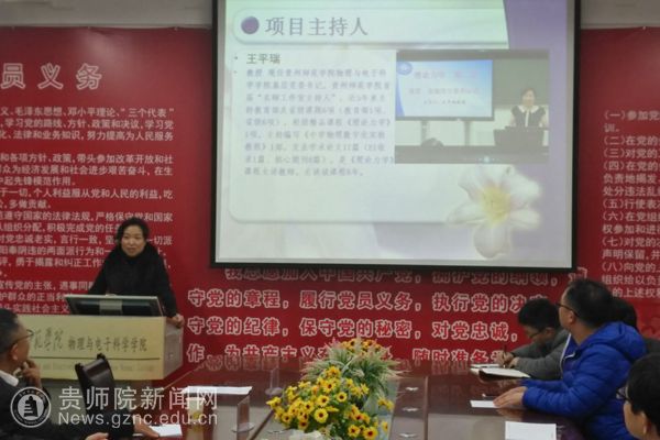 本网讯 12月6日下午,在物电学院会议室召开贵州省本科高校一流课程建设项目“理论物理”开题报告会。会议邀请了贵州大学隆正文教授、贵州师范大学宋晓书教授、万象城网页版令狐荣锋教授和教务处熊世桓教授作为专家组成员,参会的还有教学质量管理科科谭义群老师,项目组成员陈德良、刘高福、李振宇、闻水国、吴永刚等。会议由项目负责人王平瑞教授主持。
