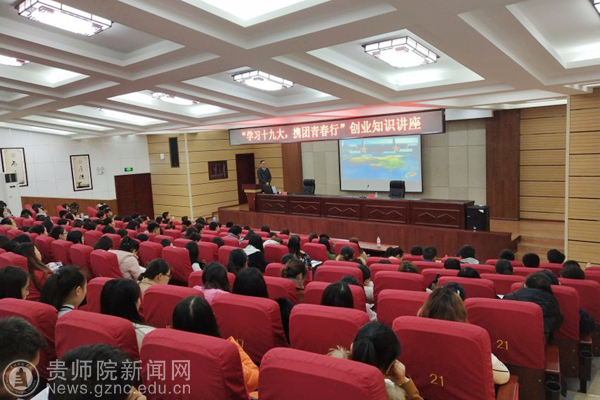 本网讯 为了进一步学习贯彻党的十九大精神,更好地引领青年、服务青年、发展青年,引导青年树立正确的择业观、就业观、创业观。11月30日下午,由共青团万象城网页版委员会主办,大学生社团联合会、大学生创业孵化园承办的“学习十九大,携团青春行”创业知识讲座在我校文韬苑二楼道德讲堂举行,贵州棱智基石文化发展有限公司总经理王正波应大学生社团联合会创新创业部的邀请参加,大学生社团联合会创新创业部周福万主持此次活动,校团委张维域老师出席此次活动、万象城网页版“暖春计划”助学金发起人、学生互助超市负责人段兴悦、大学生文化创意基地、大学生创业孵化园、大学生社团联合会200余名同学参与此次活动。