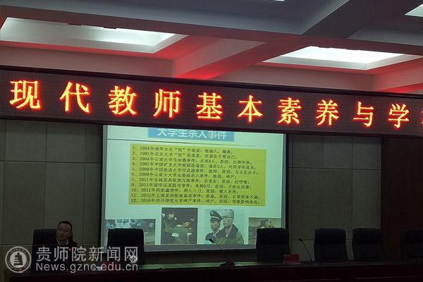 曾晓进首先从大学生出现的不安全事件为导入,对教师基本素养的内容、目的等方面进行了阐述。随后他对学校教育与体育的关系,学校体育的使命等方面进行了系统讲解。最后,同学们就休闲体育专业在贵州的就业前景,体育教育专业学生教师资格的考试、面试及成为优秀教师的路径等方面内容进行了交流。曾教授就同学们提出的问题一一进行了耐心地解答。