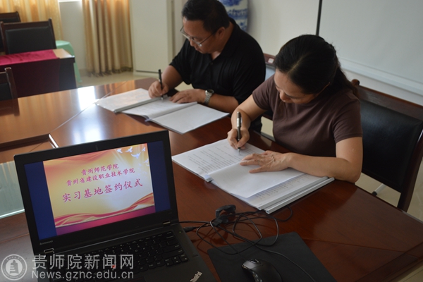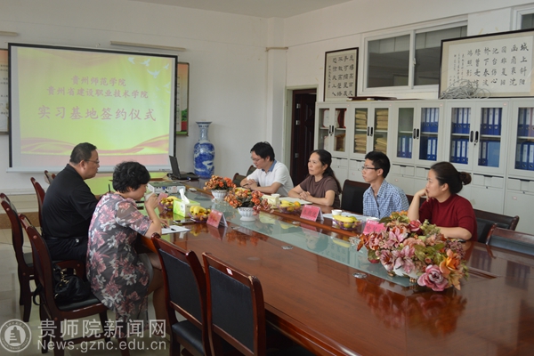 本网讯 9月30日下午,万象城网页版与贵州建设职业技术学院共建实习基地签约仪式在经政学院会议室举行,省建院基础部部长李安、教务处副处长杨雪晴与我校经政学院院长程艳萍、实习与实训办公室主任柳一桥、18届毕业班班主任喻琴瑶、办公室成员朱朝健出席了签约仪式。