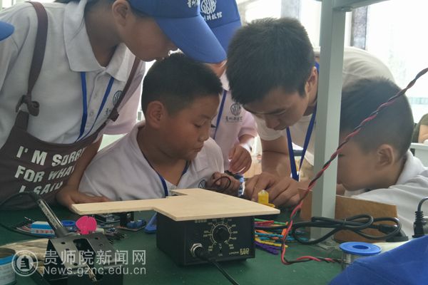 本网讯 学习可以像玩一样轻松?对中小学生来说,原来似乎不可能,现在却已经梦想成真。近日,由贵州省科技馆主办、我校贵州省R3UV新一代信息技术科普示范基地和大学生互联网+创新创业中心联合承办、贵州索思创客教育咨询有限公司协办的“走进科学,拥抱梦想”科普夏令营正式开营。