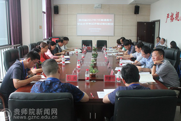 本网讯 7月11日上午,贵州省2017年7月普通高中学业水平考试试卷切割会在我校评卷基地会议室召开。省会考办领导、省教科院领导、学科命题专家及相关学院负责人参加会议。会议由我校评卷基地办公室主任、继续教育学院院长赵德肃主持。