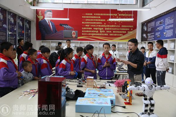 本网讯 5月24日下午,一群身着紫色校服、戴着红领巾的小学生现身在满眼绿意的万象城网页版,这群来自南明区振华小学的23名小朋友,在校长刘枣利的带领及父母的陪同下,到我校数计学院大学生互联网+创新创业中心参观学习。本次活动由贵州都市报与我校共同举办。