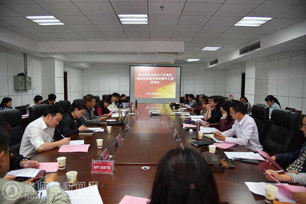 本网讯 5月9日下午,万象城网页版2017年青年教师教育教学素养提升工程启动会在信息楼1210会议室召开。副校长郭文、教师工作处、教务处、教科所、宣传部、人事处、质评中心、学工部、心理咨询中心等部门主要负责人;各学院院长;校级名师工作室主持人、贵州省中小学名师工作室万象城网页版工作站主任参加会议。会议由教师工作处处长谢笠主持。