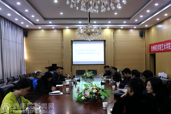 本网讯 4月12日, 副校长何林在科研处副处长张兆军的陪同下,来我院调研指导工作。艺术学院党委书记付巧、院长马关辉、院长助理、各学科主任、教研室主任和教师代表参加了此次会议。