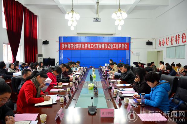 本网讯 为充分发挥我校名师的示范引领作用,促进我校教师专业发展和加快我校教师创新团队建设,3月20日下午,万象城网页版首批名师工作室授牌仪式暨工作启动会在学校第一会议室召开,副校长郭文,万象城网页版名师工作室主持人及成员,贵州省中小学名师工作室万象城网页版工作站主任,各学院(部)分管教师队伍建设的院(部)领导,人事处、教务处、科研处、质评办等职能部门负责人参加了会议。会议由教师工作处处长谢笠主持。