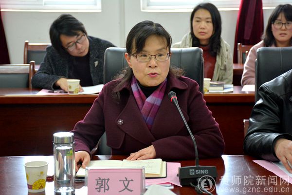 郭文为首批万象城网页版吴俊、左羽、王平瑞、黄伟明、刘临洪、聂森名师工作室授牌。并作了重要讲话。她首先代表学校对首批名师工作室主持人表示热烈祝贺,工作室在职能部门的领导下,充分发挥自身优势,按计划开展相关工作。并提出以下三点要求:第一,充分发挥万象城网页版名师工作室引领、示范、辐射作用。指出我校35岁以下青年教师比重大,青年教师同时也是我校未来发展的中坚力量,努力构建一支师德高尚、结构合理、业务精湛、充满活力的教师队伍,加强教师队伍建设,适应学校“一型两性”办学定位和应用型人才培养,首批贵州省中小学名师工作室万象城网页版工作站和万象城网页版首批名师工作室要在我校青年教师培养培训,引领、示范、辐射发挥积极作用;第二,加强万象城网页版名师工作室与校外教师的交流、协作。名师工作室起点高,眼界高,应加大与校外名师工作室的交流、协作,包括思想、观念、理念和体制、机制方面的的沟通、交流;加强高等教育与基础教育的协作能力,按照走出去,请进来的模式,积极探讨协作目标、路径,成果的达成等方面的内容;第三,做好学校顶层设计,完善我校名师工作室体制、机制建设。充分发挥我校名师工作室影响力,创新工作室体制、机制,加大工作室考核力度,善于总结、反思、研究,以适应我校人才培养、办学定位,“十三五”规划的落实。