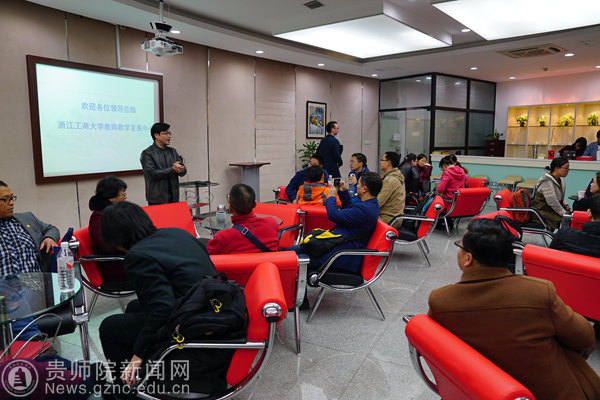 参观完实验教学中心后全体学员来到浙江工商大学教师教学发展中心,与浙江工商大学教务处历小军进行了充分交流。厉小军介绍了浙江工商大学创业创新训练的情况、创业实验班开办的情况。学员们表示我校应该学习浙江工商大学开放的教学模式和人性化的管理制度。