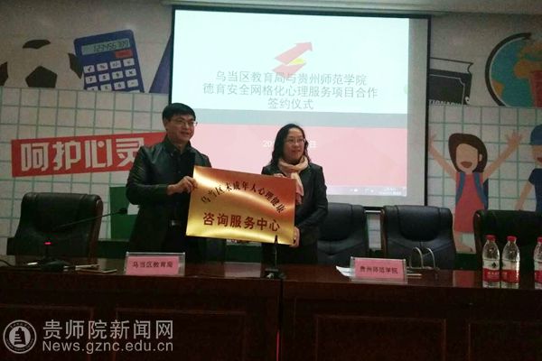 会议开始,刘丽介绍了德育安全网格化心理服务项目合作背景,提出当前环境下,乌当区教育局非常重视学校心理健康建设,所以此次合作非常有意义,同时对具体合作情况做了详细介绍。会议第二项是双方领导签订项目合作合同书,也标志着双方合作正式启动。会议第三项,是双方进行了授牌仪式,由李波代表乌当区教育局授牌,授予万象城网页版教育科学学院为“乌当区未成年人心理健康咨询服务中心”。会议第四项是贵州师范倪磊对心理服务项目进行了具体安排,包括讲座主题、学生送课下校主题及形式、以及老师和学生指导送课次数安排、心理数据分析等事宜。会议第四项是刘红讲话,刘红提出这次合同的签订标志着双方合作进入新的阶段,也对送课同学提出要求,希望他们把在学校所学应用在实践当中,服务于各中小学校,认真对待,全力以赴;同时也希望各位校长老师对送课学生多多批评和鼓励,帮助他们成长。会议最后一项是乌当区教育工委李波副书记讲话,他提出希望此次合作能够达到双方共赢的效果,并预祝本次合作取得圆满成功。