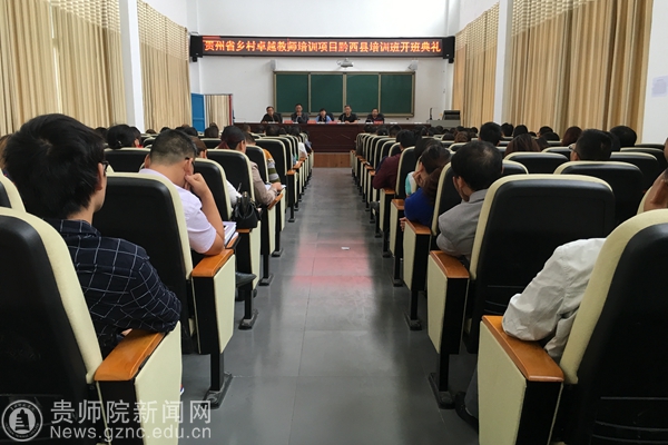 本网讯 9月23日上午,贵州省乡村卓越教师培训项目黔西县培训第一阶段第二环节开班典礼在黔西县思源实验学校会议室举行,继续教育学院办公室主任罗艳华、师训部主任何平;黔西县教育局教研室主任孙昕、师训办主任李家礼、各学科首席专家、项目省级培训团队、导师团队、各教学班主任及一百一十五名参训学员参加了开班典礼。开班典礼由黔西教育局李家礼主持。