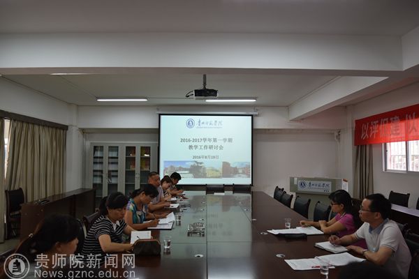 本网讯 8月19日下午,副校长郭文到教务处指导新学期教学准备工作,在文韬苑教务处会议室召开2016-2017学年度第一学期教学工作研讨会,听取了教务处各项工作汇报并就相关教务工作进行研究,教务处科级以上干部参加会议,会议由教务处处长熊世桓主持。
