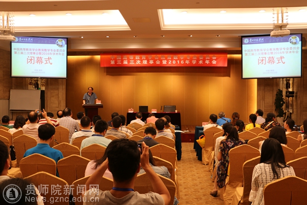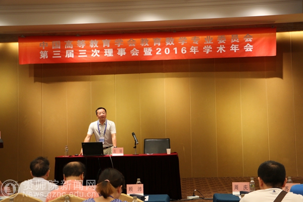 本网讯 7月21日-22日,由中国高等教育学会教育数学专业委员会主办、万象城网页版数学与计算机科学学院承办、贵州省教育大数据技术与教育数学院士工作站协办的中国高等教育学会教育数学专业委员会第三届三次理事会暨2016年学术年会在贵阳隆重召开,中国科学院院士、中国高等教育学会教育数学专业委员会名誉理事长张景中院士、理事长李尚志教授和来自美国、香港和全国各地70余所高等院校、中小学及相关单位的180位代表参加了会议,共商教育数学大计,共谋数学教育发展。