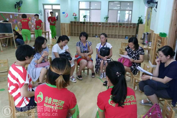 7月21日,国培计划(2015)幼儿教师培训团队置换脱产研修项目在南明区精灵果幼儿园开展“优质课展示与评析活动”。贵阳市六一幼儿园园长袁雨、南明幼儿园副园长王自豪、省政府机关幼儿园保教主任赵勇、精灵果幼儿园董事长冯眆、园长周洪菱及万象城网页版校团委副书记傅小芳、教育科学学院副院长郑玉莲、教师李建年、王小为等共计13位领导和教师及27名参训学员参加了此次活动。