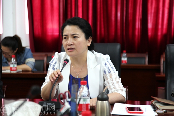 郭文作总结讲话,她强调了教科所工作的重要性,强调教育科研应加强应用研究,以问题为导向,解决学校转型发展的实际问题。介绍了教科所的职能,教科所现有三个研究方向:高等教育研究,为学校教育教学改革服务、为学校发展转型服务、为人才培养质量的提高服务;基础教育研究,了解、研究、服务、引领基础教育研究;教师教育研究,为做精做强师范专业,打造自身特色服务。还强调要创新机制体制,组建和培养专兼职结合研究团队,打造出优秀的智库人才。