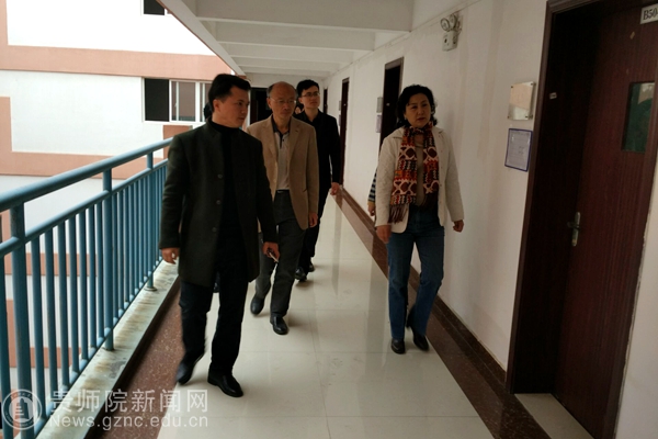 本网讯 3月22日,省文化厅非遗处处长张诗莲、贵州省非遗中心副主任毕琪、贵阳市非遗中心副主任王先凯、乌当区非遗中心主任胡晓蓉一行4人来我校考察“贵州省非物质文化遗产传承人群培训基地”建设情况。副校长汪羿及校团委书记张婷、历史与社会学院院长申满秀、艺术学院院长马关辉、传媒与设计学院副院长聂森等部门负责人陪同讲解。