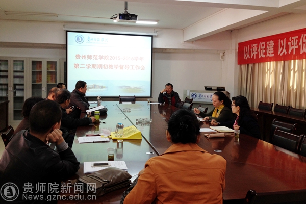 本网讯 3月1日上午,我校在教务处会议室召开2015-2016学年第二学期期初教学督导工作会,副校长郭文、校级教学督导、教学质量监测与评估办公室有关人员参加了会议,会议由教学质量监测与评估办公室主任邓琴主持。