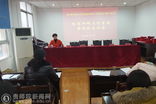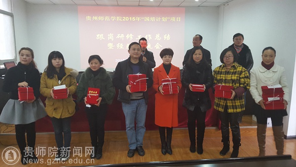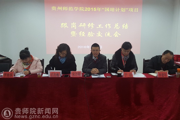 本网讯 1月7日上午,我校2015年“国培计划”教师培训团队置换脱产研修项目、乡村教师访省内名校项目跟岗研修工作总结暨经验交流会在贵阳市云岩区教师进修学校隆重召开。云岩区教师进修学校培训部主任于洁,南明区教师学习与资源中心继教部主任王丹梅,校国培办副主任、继续教育学院副院长、宋万琚教授,教育科学学院李建年副教授,置换项目负责人何荣及国培办相关管理人员出席会议。来自南明区、云岩区13所中学、5幼儿园的领导及项目负责人参加会议。会议由继续教育学院教师培训部主任罗艳华主持。
