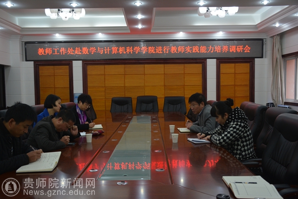 为了进一步落实学校应用型办学定位,加快学校内涵发展和教师队伍建设,同时为制定学校“十三五”教师队伍建设规划掌握一线需求,12月2日上午和3日上午教师工作处处长谢笠、副处长王茜等一行分别到数学与计算机科学学院和文学院进行“双师型”教师队伍建设调研,调研工作会议分别在数计学院和文学院办公室进行。文学院党委书记韦丹、院长吴俊、数计学院院长左羽、党委副书记李艳琴、副院长肖宏治、办公室主任熊伟程分别参加了会议。