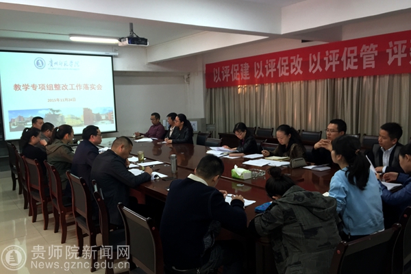 11月24日上午,副校长郭文组织教务处、质评办在教务处会议室召开教学专项组整改落实会议,教务处科级以上干部及质评办全体成员参加了会议,会议由郭文主持。