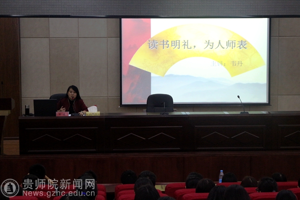 讲座接近尾声时,韦丹老师以《诗经·卫风·淇澳》作结,希望象诗中的君子一样,“如切如磋,如琢如磨”,不断地学习,修养身心,真正做到严于律己,作风正派,从传统文化中汲取精髓,成就良好的品格,为将来成为一名合格的教师而努力。讲座现场气氛热烈,同学们纷纷表示深受启发。