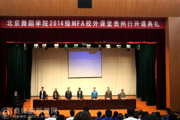 9月21日,由艺术学院所承办的北京舞蹈学院2014级艺术硕士(MFA)校外课程贵州行开课典礼在演播厅隆重举行。出席本次活动的有北京舞蹈学院教授刘建、郭田,艺术学院党委副书记兼副院长马关辉、贵州省舞蹈家协会副主席刘强等。会议由艺术学院舞蹈学科主任肖伟主持。