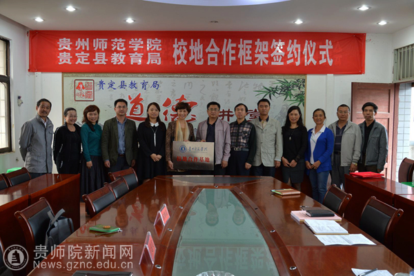 宋处长与王院长一行受到贵定县教育局局领导、各科室负责人及贵定县部分重点中学校长等的隆重欢迎并举行了校地合作基地协议签署座谈会。会议在热烈友好的气氛中进行,双方就今后我校学生实习安排等具体事宜进行了交流。会上,县教育局邓燕国副局长表示一定高度重视与我校的校地合作基地建设,妥善安排接收我校学生到县属各中小学进行实习,要求各中小学负责人严格按照合作协议制定安排好实习生的实习内容,为培养合格的一线中小学教师尽责尽力。宋处长对县教育局高度重视双方校地合作以及今年实习生的妥善安置工作表示感谢。希望今后双方通力合作,将我校学生在贵定县各中小学的各项实习管理工作夯实,使校地合作基地建设规范化、常态化以及长效化。王院长指出,校地合作是基于双方平等、互惠互利基础上开展的。贵定县教育局接收我校学生实习,一方面解决了我校每年师范类学生的实习安置,另一方面也为贵定县各中小学培养未来合格的、服务当地的师资队伍提供储备。同时,作为师范院校,我校将为贵定县教育局及所辖学校提供教学管理咨询、师资培训等服务,从而实现校地合作、双边互惠、共同发展。会后,双方签署了校地合作基地框架协议。